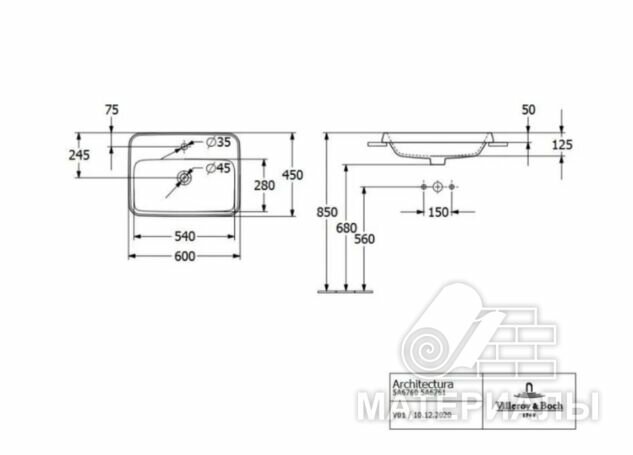 Продаю повністю новий запакований умивальник. Причина продажу: замінили на іншу модель. Умивальник Villeroy Boch Architectura 5A6760R1 60х45